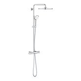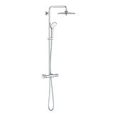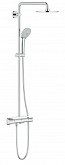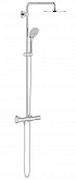 - душевая система GROHE, в виде стойки, включающая в себя верхний душ и ручной душ, система оборудована термостатом. Предлагаются модели, отличающиеся по дизайну, есть возможность подобрать под интерьер ванной комнаты;