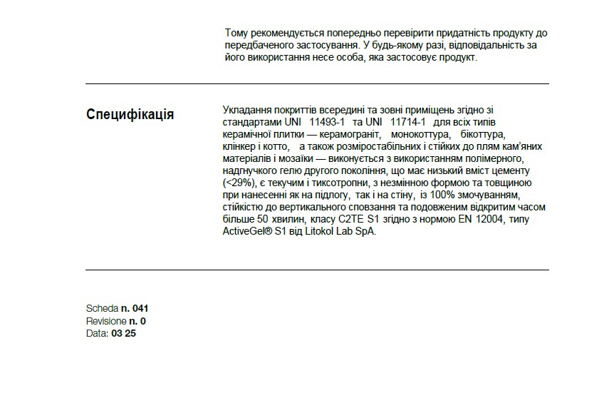 2 (1 МПа), E Увеличенное время открытого слоя, S1 Эластичный, T Устойчивый к сползанию (тиксотропный)Для теплого пола